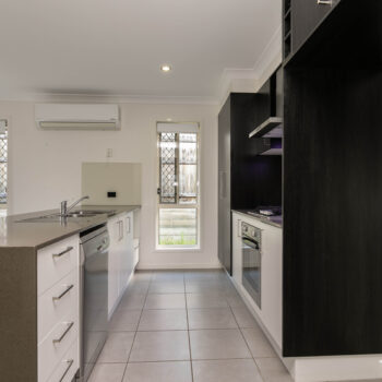 The modern kitchen takes centre stage with its sleek dark grey flooring, quality stainless steel appliances, gas cooktop, dishwasher, and generous bench space—perfect for both busy mornings and hosting guests. Overlooking the main living and dining areas, it ensures the cook is always part of the conversation.